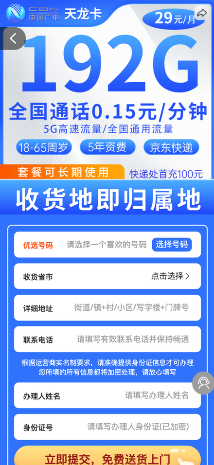 | 实体卡 | 用于门店铺设线下卡;还可配置入网信息采集:NFC读取身份证、证件照、活体检测、人脸比对、确认视频、电子签名等功能 | 线下门店开卡线上管理和结佣 |