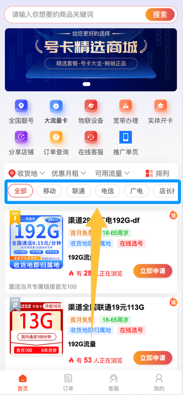 - 为了提供更加方便商品选择,系统默认内置了四大运营商分类。你也可以添加新的分类来满足不同商品的需求