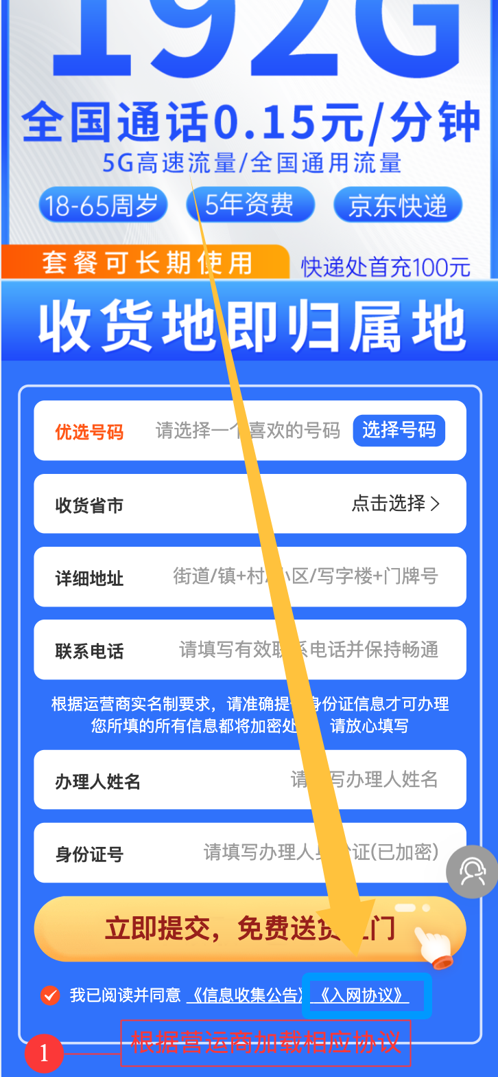 - 默认分类在用户下单页,会自动识别运营商协议类型,并展示相应的协议内容