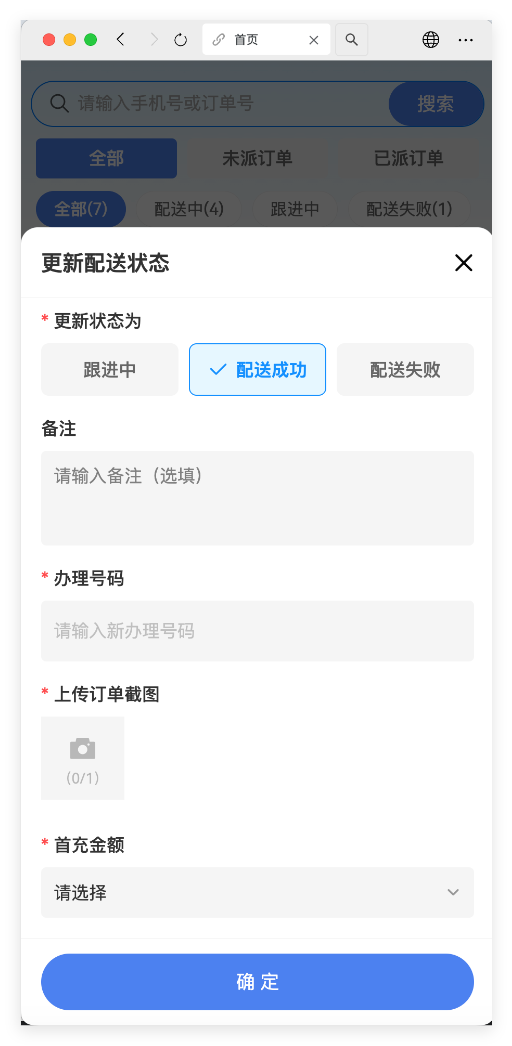 号卡、宽带、靓号线下订单等需要上门安装/办理业务的配送人员管理,可实现多层级权限/分销/指派/配送,目前已集成完整的行业配送状态流转